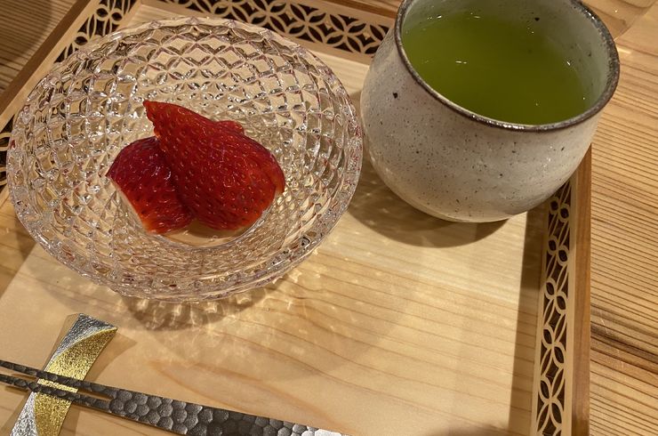 2021/05/02今の季節の水菓子は、丹後の『あきひめ』といういちごです。 酸味がほとんどなく、とっても甘いいちごです。 季節的にまもなく終わります。 是非今の時期に食べてみてください!
