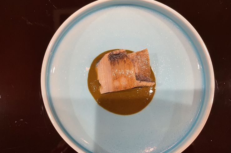 2021/07/10日本三景の天橋立がある、丹後・宮津の天然黒鮑です。 厳選した500g以上のもののみを使って3時間以上かけて蒸し鮑にします。 肝ソースは肝の旨みを活かすために、蒸し汁と丹後の調味料で仕上げています。 鮑を召し上がっていただいたあとは、丹後の市場流通していない地海苔で巻いたいぶりがっこをソースとからめてお召し上がりください。 9月初旬くらいまでの、鮑が美味しい時期だけの一品です。... -